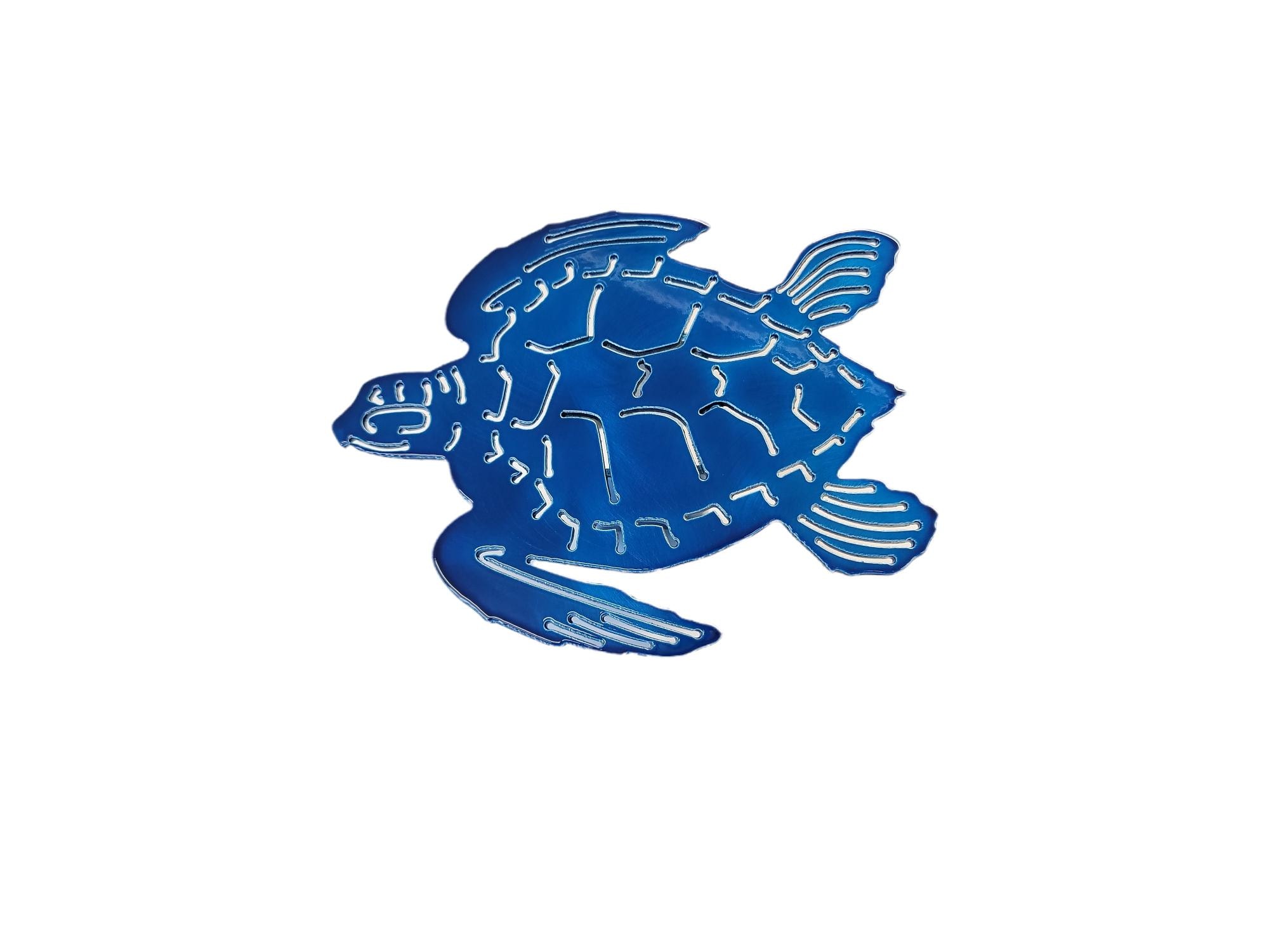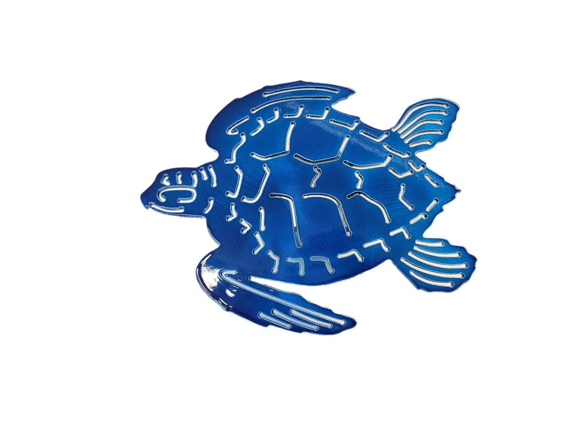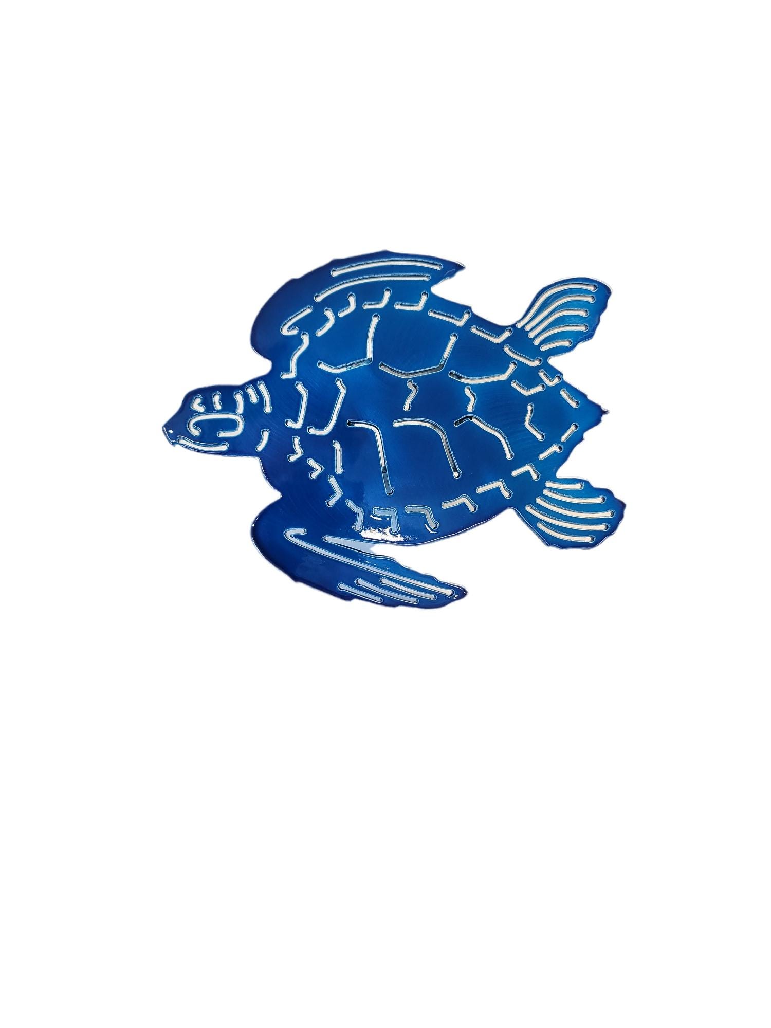 Turtle hitch cover is the perfect addition to your car or truck. This would be the perfect gift to the turtle lover in your life. This hitch is painted with beautiful blue translucent paint and powder coated clear! These really do shine so nice in the sun. These hitch covers are 8 inches wide by 6 inches tall, and comes with the hole drilled to secure to your vehicle. Please ask us about any customization's! All pieces come fully powder coated and made of 1/8 inch thick aluminum. Please double check size of hitch before ordering, picture included on how to measure.